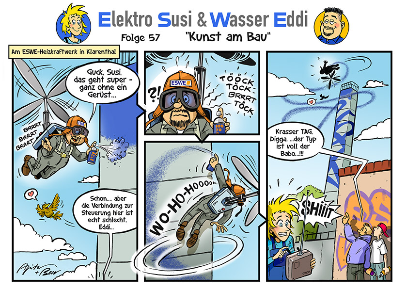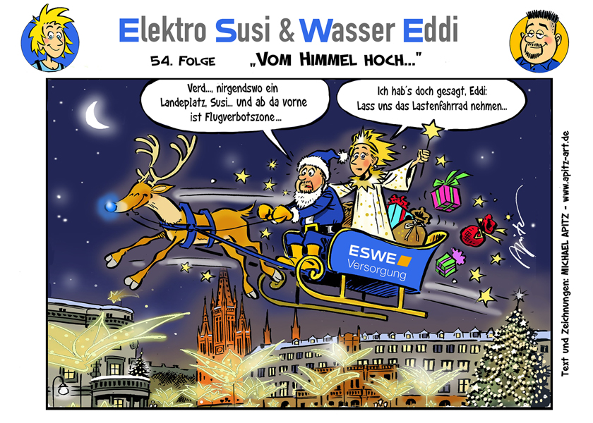 Hier finden Sie alle Abenteuer der ESWE-Maskottchen "Elektro Susi & Wasser Eddi"